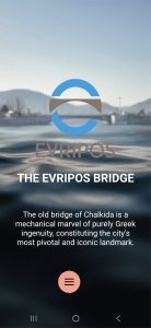 We are very glad to announce that we have created and launched, on behalf of OLNE and Chalkida municipality, the mobile app Evripos Bridge. The app provides notifications about the opening of the Old Evripos Bridge and other emergencies in the city of Chalkida, along with updates, events, useful information and live video of the bridge.